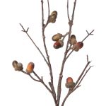 This faux acorn branch features handcrafted details and realistic looking acorns. Ideal for seasonal arrangements and tablescapes.