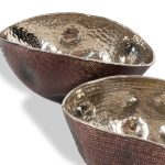 Crafted from aluminum, these two-tone decorative bowls feature a textured bronze exterior with a hammered silver interior.