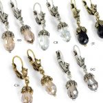 Faceted crystal teardrops are capped in art deco canopies and dangle from leverback style earrings. Choice of demure, neutral colors with more than a hint of luxury. Made in our Los Angeles, CA studio. Style E988. Enjoy learning more about 1920s Art Deco style on our blog…Shelley talks 1920s jewelry and design, click here: Art Deco: Angles and curves traveling at the speed of lifeThe highlights of Art Deco fashion, click here: Fashionable Flapper: Almost a 100 years later and still the bee’s knees