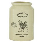Crafted with a durable material that is watertight and made from pure stoneware, features a glazed beige finish with black-stamped barn prints