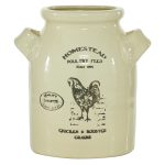 Crafted with a durable material that is watertight and made from pure stoneware, features a glazed beige finish with black-stamped barn prints