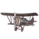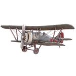 It features a metal construction of a biplane with painted details and rustic finishes, perfect for an antique lover’s bedroom or office.