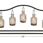 This decorative candle holder for indoors highlights bottle-shaped hanging glasses and rectangular metal frame with arched topWipe clean with a dry clothVotive candle holder crafted of welded metal with five suspended glass decanters