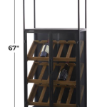 The black wood standing wine rack measures 23.50L x 14W x 67H inches, and weighs 53.50 lbs.