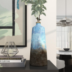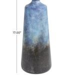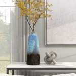 Elegant modern vase features varying shades of blue and black in a textured ombre finish, with a polished gold accent piece at the top.