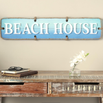 As an eye-catching wood wall decor piece, it is wrapped in rope for added style and features the welcoming phrase “Beach House”.