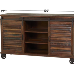 BROWN WOOD 6 SHELVES AND 2 DOORS BUFFET WITH WHEELS