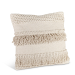 This woven square cotton pillow is sure to make a beautiful accent piece in your home! The pillow measures 18inL X 18inW X 5.5inH and is colored in horizontal shades and textures of ivory. The stylish pillow will tie any room decor together and is filled with 100% polyester extra support and form. Machine washable.