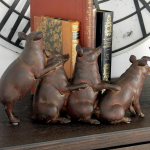 Pig decorative statue features an elegant matte dark brown finish with copper shading that make it stand out.