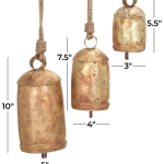 Create a captivating focal point in the home with these rustic gold bells, designed with a weathered finish and brown jute hanging rope for an old-world appeal