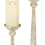 Distressed Ivory & Gold Pillar Holder (2 pc. set)