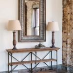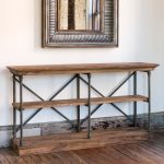Aged, delicately tapered metal legs combined with textured elm wood give this 3-shelf console a rustic yet distinctly refined appearance.