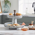 Silver Metal Farmhouse 2 Tier Tray Stand,