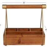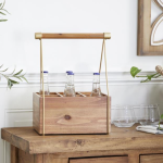 This wooden holder showcases a rectangular box compartment for 6 wine bottles and comes with an A-shaped side handle design.