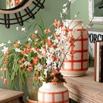 Featuring an oversized gingham check orange on cream pattern and a simple cylindrical form, the Flannery large vase is as versatile as it is stylish.