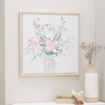 A delicate painting of a freshly cut flowers dominates this wall art and flaunts a projected canvas for an additional dramatic impression