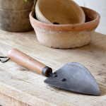 Every gardener and garden center need a trowel, and this one is one that horticulturists will proudly display among their tools. Our version of the trowel may appear too attractive to dig in the dirt with, but it is a fully functioning tool for the stylish landscaper. The Forged Iron Trowel has a black metal curved scoop, smooth wooden handle, and leather strap for easy hanging storage.