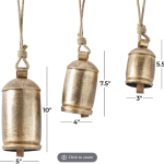 Create a captivating focal point in the home with these rustic gold bells, designed with a weathered finish and brown jute hanging rope for an old-world appeal