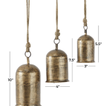 Create a captivating focal point in the home with these rustic gold bells, designed with a weathered finish and brown jute hanging rope for an old-world appeal