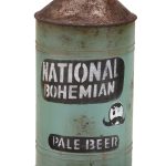 15″ Rustic Distressed Green Finish Iron Vintage Beer Can Vase with Graphics and Rusted Raised Top, flat base