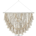 Boho wall decor plays with the classic white and brown combination on its strings and beads