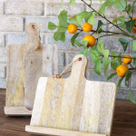 Inspired by a butcher block cutting board, this horizontal cookbook holder is a clever way to display a book or tablet.