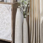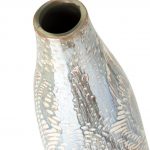 Make a statement in any space with this striking large oversized handcrafted ceramic vase. Artisan crafted, it features a hand-painted flora inspired surface design in an iridescent finish adorning a tall, cylindrical body with a tapered mouth. This versatile vessel is perfect for adding visual interest to a range of styles and settings.