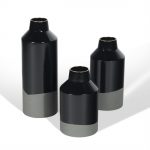 These metal vases feature a matte grey base with glossy black body and a touch of gold around the rim. Beautifully on their own or displayed with your favorite flowers