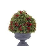 A festive fiberglass urn with greenery and berries ready for any wedding or Christmas function.