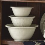 The shapes of the pieces in the Levingston Collection channel the best of 18th-century British design and innovation. Painted and raised elements on delft, stoneware and redware antiques and excavated shards at Colonial Williamsburg provided the decorative motifs for this durable and beautiful stoneware. Decorative details include a rosette from a cup when Jamestown and Plymouth were fledgling New World colonies, a leaf motif from a commemorative plate, and a border from a delft plate excavated from Wetherburn’s Tavern.