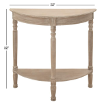 Traditional style inspired light brown half circle console table is made from solid Pine wood materials.