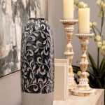 Add effortless style to your home with the Maddie large vase. Artisan crafted, it features an indigo blue glossy glaze contrasted with hand-carved floral surface details and base in a light matte gray finish. Perfect for transitional or traditional styles, it makes a dynamic focal point in any setting.