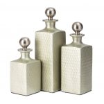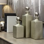 Add classic style to any home with this trio of aluminum decanters in textured, burnished silver.