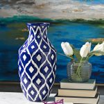 Jar of clay: A classic and crisp blue and white glazed tall vase serves up fresh pattern and color in any setting.