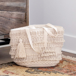 With a subtle nod to macrame, our Marlo Fringe Cotton Basket is a natural woven basket with handles and large fringe tassel. Perfect as a stylish carry-all or a faux plant pot cover.Item Dimensions: L12.00″ x W12.00″ x H12.00″