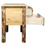 The durable genuine lodge pole pine legs that support the solid, American grown wood laminated panels are finished in the “Glacier Country” collection style for a unique, one-of-a-kind look that is reminiscent of the Grand Lodges of the Rockies, circa 1900.