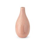 The Nakasa Levana medium vase is a work of art that will add beauty to living spaces. Handcrafted in ceramic, it features a blush rose crackled glaze finish and textural vertical lines at the neck giving it a distinctive appearance. Perfect for transitional or contemporary styles, it makes a dynamic focal point in any setting.