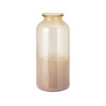 Establish an eye-catching focal point with this large salmon art glass vase by Nakasa. An example of artisan glass at it’s finest, mouth-blown textured glass in translucent salmon hues is shaped into a tall cylindrical body with a short tapered neck. Infusing your home with visual splendor, it makes a statement displayed alone or in a grouping.