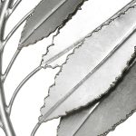 Handcrafted from solid iron, these metal branches feature individually cut leaves with crude gold tipped edges, finished in lightly distressed silver leaf.