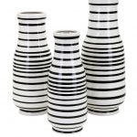Boldly striped in black and white, this medium ceramic vase makes a distinctive statement piece.