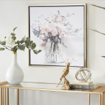 This captivating framed flower wall art features a soft-toned flower vase painting with an enchanting long stem floral arrangement