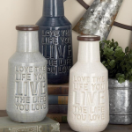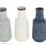 This farmhouse assortment of 3 vases for home decor is meticulously crafted from molded porcelain and glazed with textured message patterns.