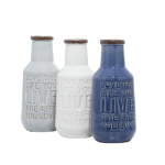 Polished multi-colored vases for dried flowers feature round jar shapes with messaging