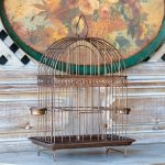 In a beautiful copper finish this wire bird cage has a hinged front door opening. Can be used for tabletop or hung from hook. For decorative use only.