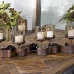 Swirled, antiqued, bronze metal candleholder with transparent copper brown glass.