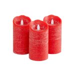 ROUND RED FROSTED PILLAR FLAMELESS LED CANDLES WITH REMOTE, SET OF 3: