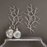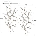 Artistically replicated branch made of hand forged and hand hammered iron with a bright silver leaf finish.