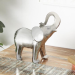 Polished silver home decor figurine offers a distinctive elephant shape that create an eclectic aesthetic sure to stand out in .any setting.