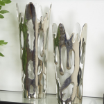 This aluminum vase boasts a melting body design that makes it perfect to use as a standalone decorative piece.