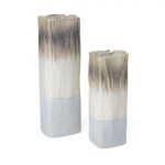 Complete your coastal decor with this eye catching ceramic table vase. The rectangular shape is complimented with a tri-color ombre finish in earthy neutral browns and off white, with a light blue-grey stone like textured bottom. Equally beautiful filled with florals or sitting solo. Place it on a bookshelf, accent table or mantle for that finishing touch. Display it in multiples or pair it up with it’s matching counterpart for a perfectly designed space. Each size sold separately